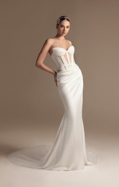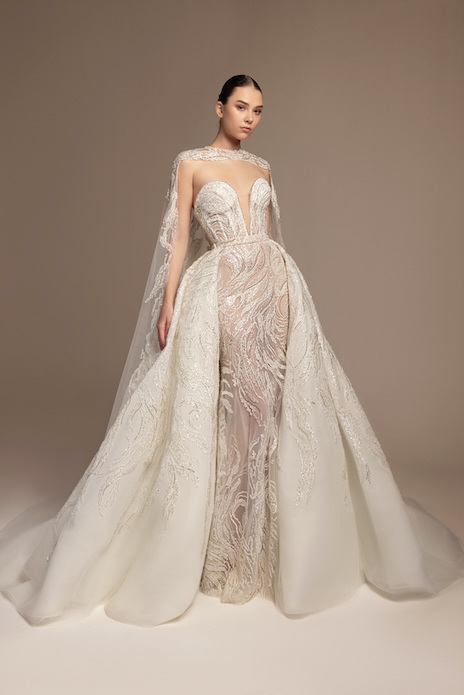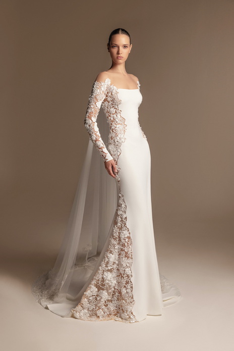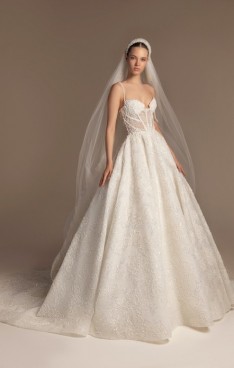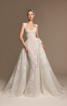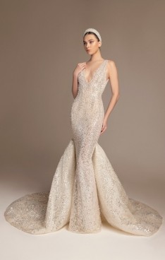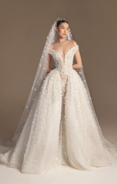 It’s in the soft volumes of cascading fabrics, in every lace detail whispering stories of magical feelings. It’s in the dramatic trains that sway with every step, in the ball gowns echoing the grandeur of timeless romance, or in the sensuous mermaid silhouettes revealing intimate feelings.
