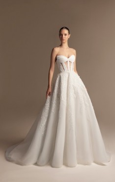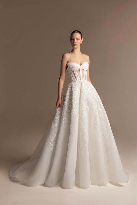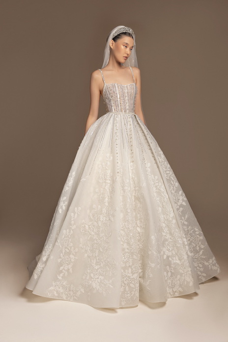 It’s in the delicate handmade embroideries and embellishments, in the corset bodices and flattering heart-shaped necklines, in the floral pattern bloom, crafted in a variety of shapes, reminding us of how love blossoms unexpectedly… It’s all in the details that speak to the bride’s emotions, the feeling of being truly seen and cherished. Each Tony Ward gown tells a story of romance… It’s in the dynamic nature of love itself; the pieces might be different, yet with the same beating pulse that make her feel ethereal and empowered.