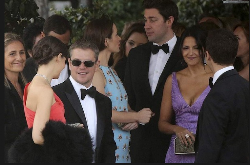 On the guest list were stars that included Matt Damon, U2’s Bono, Cindy Crawford and husband Rande Gerber, Emily Blunt, Bill Murray, Vogue’s Anna Wintour and many more. Luxurious wine and champagne flowed and dinner was a delectable five-course meal. The newlyweds handed out memorable gifts to their guests; iPods with playlists picked by them as a memento of the occasion.