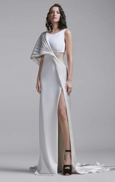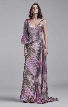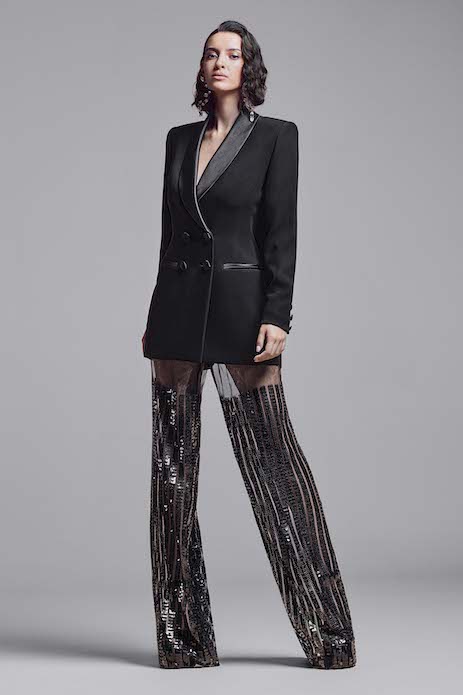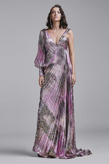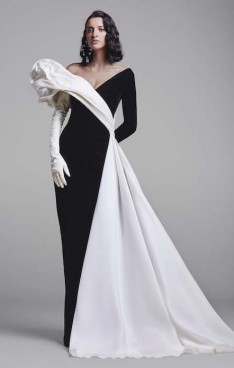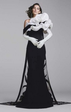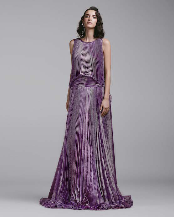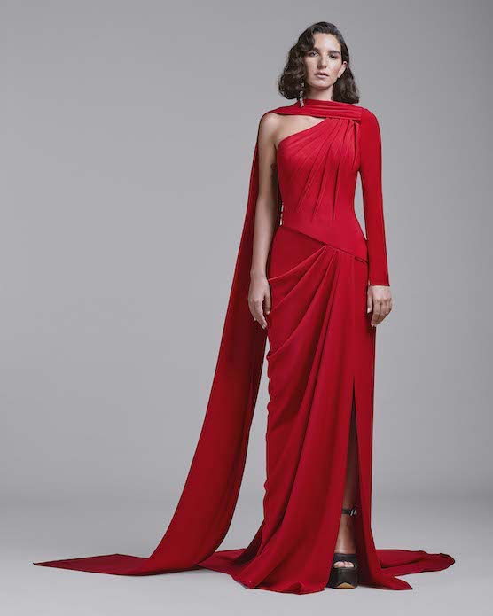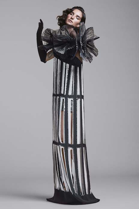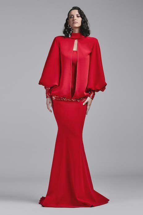 The collection features timeless elegance in simple volumes and primal colors. Black, white, red, purple, gold, with touches of anthracite, and greige. The color palette is reminiscent of eras of prosperity and artistic expression. Elements of lamé and iridescence magnify the opulence that illuminates the collection.