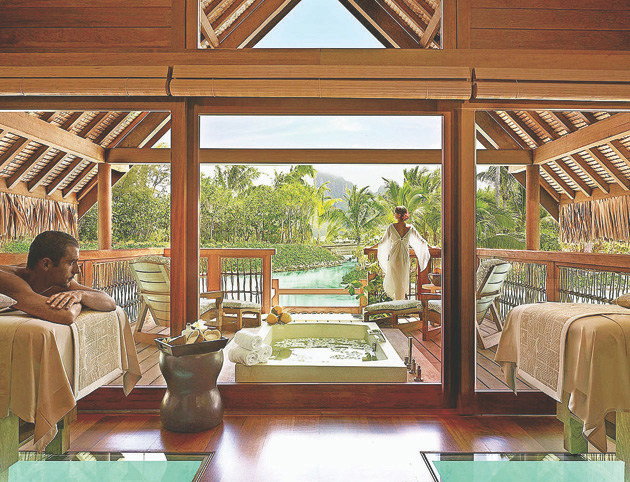 Here, you can rent a kayak and paddle out into the calm waters or relax at the spa nestled on the edge of a lagoon surrounded by lush tropical forests. Inspired by the kahaia tree, the spa has a very earthy, organic Polynesian feel to it. Feel the tropical scents of frangipani and sandalwood fill the air as you walk along the welcoming sanctuary. This spa uses holistic Osea products and 100% certified organic seaweed harvested from the purest waters on the planet. Prior to your spa treatment, you can enjoy the facilities, which include a steam room, outdoor vitality pool with a shaded lounge area, a sensory experience shower, and a drench shower.