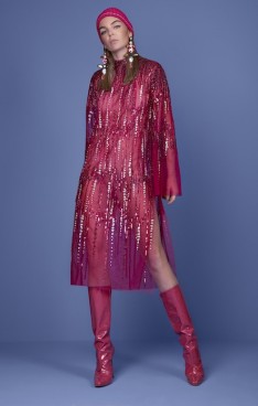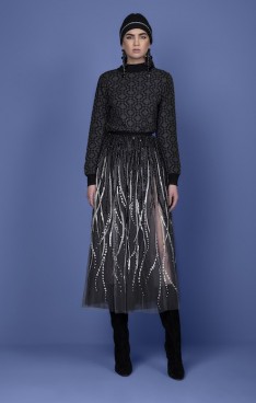 This season, a breeze of freshness thrives on silhouettes that reconcile strength and delicacy. Luxurious fabrics gain new dimension from the embroidery depicting hypnotic constellations of light and abundant plant motifs composed on outfits that are diverse in cut and volume. True to the plural influences of the contemporary generation, the collection is enriched with accessories - boots, wedge shoes, and hats – that take looks to the unique edge, simultaneously drawing essence from the energy of the urban street and the classic codes of Grand Soir elegance.
