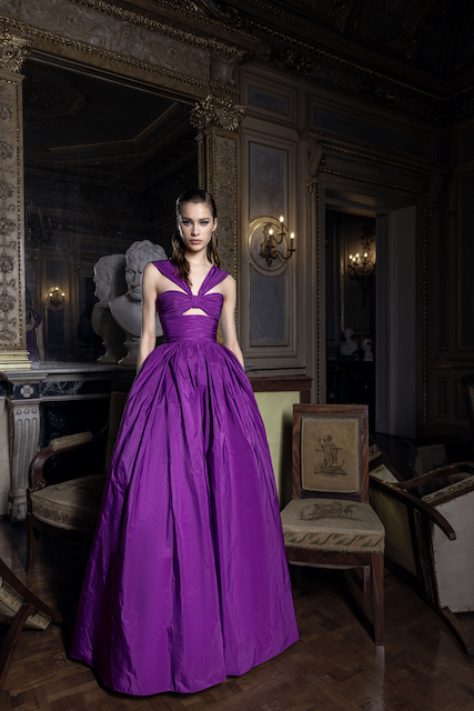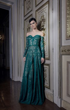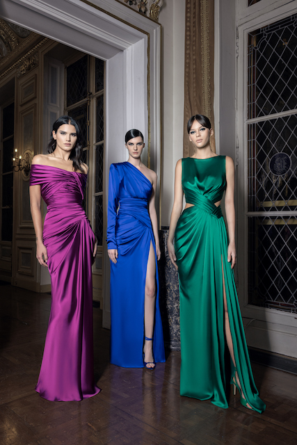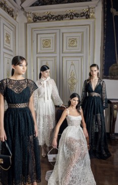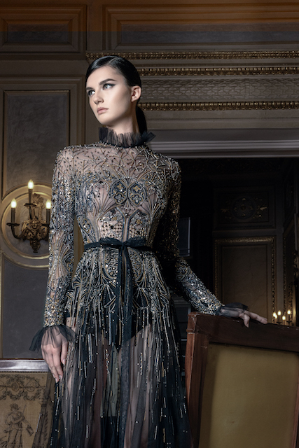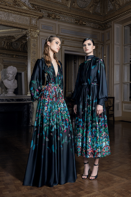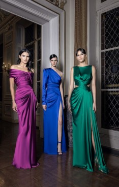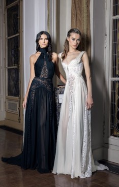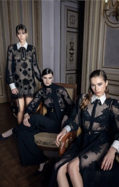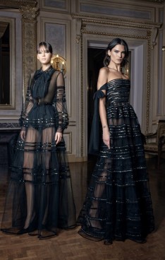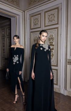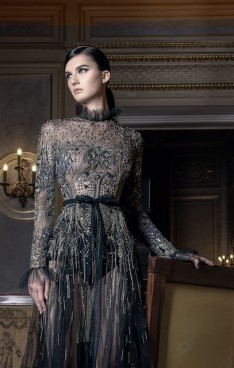 Zuhair Murad preserves the mystery in the gentle movement of matte embroidered mesh or airy sequined tulle. Emotions intertwine through fluid faille dresses where kaleidoscopic night butterflies gracefully twirl.