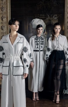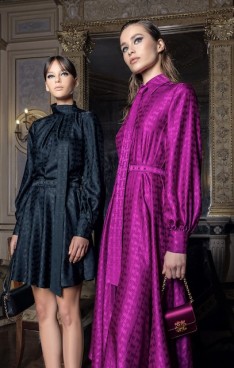 Silhouettes glide mysteriously, boldly entrenched in a dark aesthetic adorned with luminous details. Buttons metamorphose into distinctive brooches or shimmering crystals on structured jackets, fitted tops, and skirts that accentuate curves.