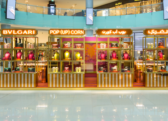 Bulgari unveiled its “Pop (Up) Corn” located in the Fashion avenue at The Dubai Mall with the presence of Lebanese Actress Nadine Nassib Njeim. The Roman Via Condotti moved for one night to the heart of Dubai with its Popcorn distributors, ice creams, cotton candy and Italian delights.