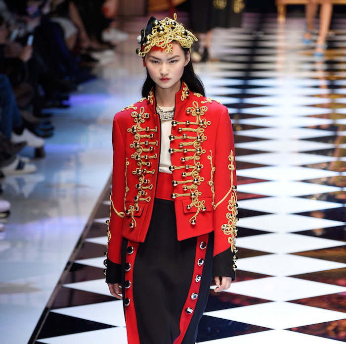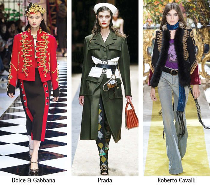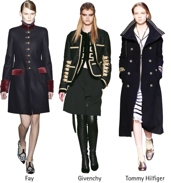 While last fall was all about the ‘oh so versatile’ camel coat, this season sees the navy-inspired overcoat in the spotlight. Countless designers from Givenchy, Valentino and Temperley London sought inspiration in the military world for their collections. Burberry took on the trend with classic pea coats while at Dolce & Gabbana, Etro, Roberto Cavalli and Gucci the mighty military jacket was refreshed and embellished with bows, pompoms and oriental prints. The gold-buttoned coats seen at Tibi, Tommy Hilfiger and Coach add a touch of drama while at Prada Popeye hats paired with cotton corset belts atop khaki coats gave a fresh and unique take on the trend. Paired with everything from dresses and denim to animal prints, the versatile military coat is a must-have.