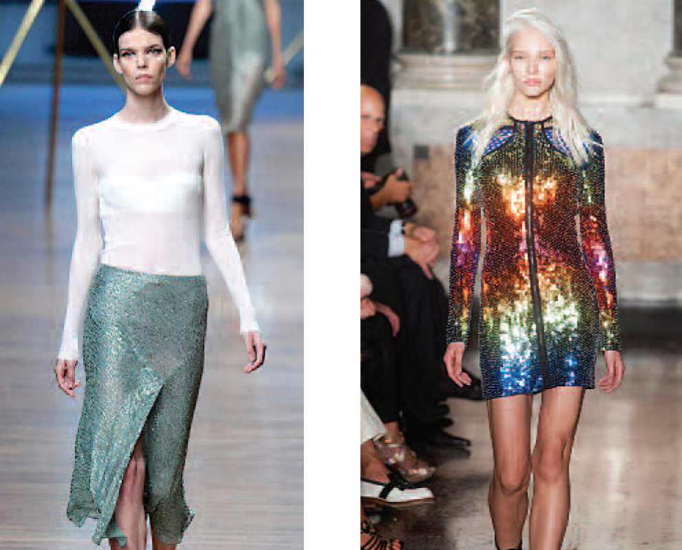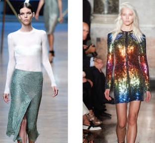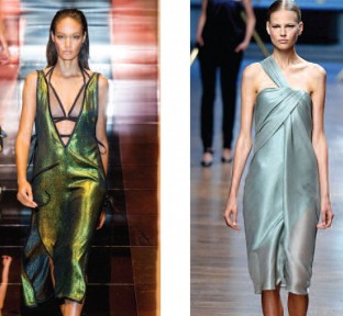Now is your time to shine, literally! Metallics had a strong presence on Spring 2014 runways with designers playing with reflective metallics in glamorous golds and shimmering silvers as well as jewel tones. Gucci, Lanvin and Fendi all featured high-shine and iridescent shimmer in their collections for Spring 2014. Ralph Rucci, Altuzarra, Diane von Furstenberg, Jason Wu and Thakoon also incorporated dazzling metallic looks into their collections. Tom Ford, Saint Laurent andVersace channeled the dancing queen while Haider Ackermann embellished sheer skirts with metallic fabric and showcased colorful metallic suits. Metallics are a great way to add a touch of luxury and high fashion to your wardrobe. For those not afraid to get their shine on, try a metallic dress or pants suit for a night out on the town, just ensure that you have sharp tailoring and clean lines. If all-out shimmer is a little too adventurous for you, one statement piece will do the trick – metallic heels, a clutch or midi skirt paired with contrasting textures but similar colors will achieve an on-trend look that isn’t over the top.