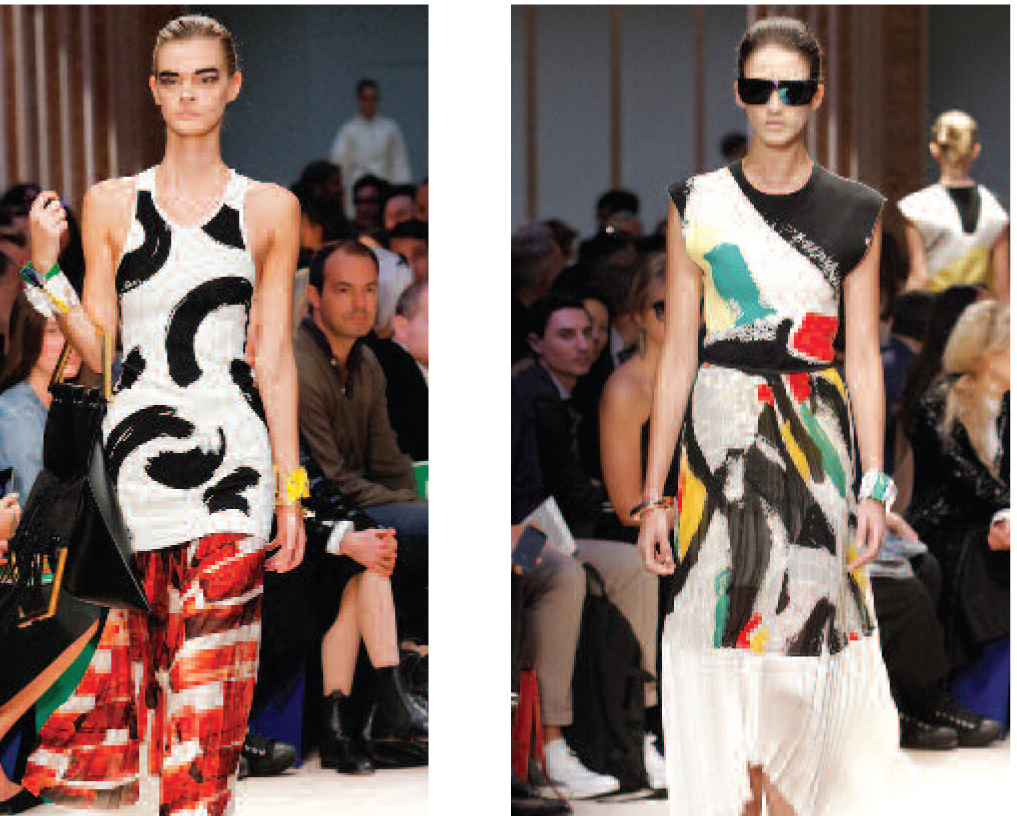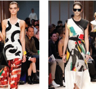 This season is all about bold artistic expressions! From bright color palettes and bold brushstrokes to abstract textures, modern art and painted prints, designers sought inspiration for their Spring 2014 collections from the world of art. Céline’s creations were said to be inspired by Brassaï’s graffiti work with guests seated on bright geometric blocks while Prada used a parade of oversized portraits on dresses, coats and bags while openly crediting the six artists who painted them. Giles adorned dresses with 90s prints from fashion photographer Glen Luchford while Dolce & Gabbana adorned everything from dresses to skirts and t-shirts with lithograph postcard scenes of Ancient Greece. Models for Chanel were donned in splashes of bright color as they made their way down the runway, which had been converted into an art exhibition for the show complete with giant Chanel fragrance bottles and handbags. Don’t be afraid to channel your artistic side this season, go all out and clash wild prints, layer statement jewelry over embellished dresses and wear statement pop art inspired pieces – it’s all about creating your own bold, individual look!