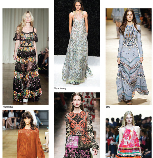 Countless designers sought inspiration from the Orient in their spring 2015 collections showcasing kimono-style coats, tops and obi belts, which proved to be the must-have accessory for spring 2015! The ever-so romantic and super comfy bohemian chic trend is still going strong and while you may think florals for spring seem utterly unimaginative, designers got creative this season offering a fresh take on the classic print from modern watercolor florals at Chanel to psychedelic flower power at House of Holland. Forget last season’s plaid; this spring designers have downsized to gingham prints. From Oscar de la Renta’s cropped tops and pencil skirts to Altuzarra’s ultra-feminine dresses, it’s time to get your gingham on! Finally, suede (not the first fabric that comes to mind for the warmer months!) unexpectedly made its way down several runways including that of Derek Lam, Jason Wu and Gucci; whether in pastel colors or 70s-inspired, suede is definitely making a comeback! Read on to see all the latest trends hot off the Spring/Summer 2015 runways and get inspired!