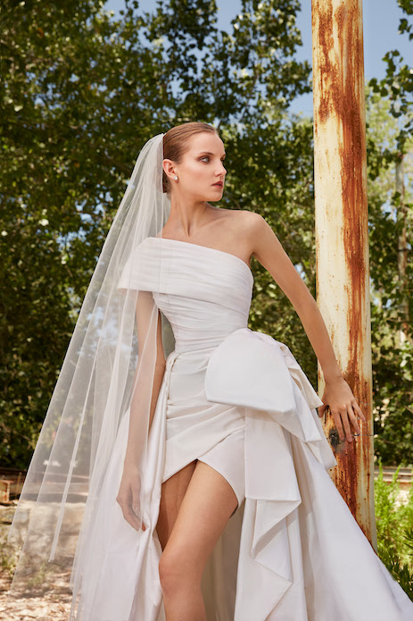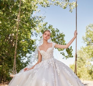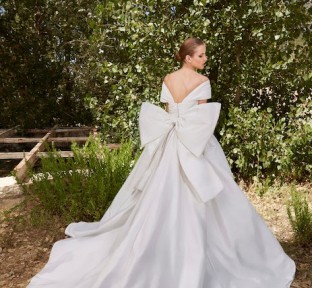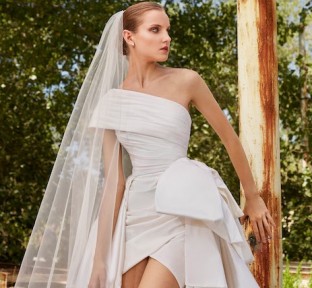 Each gown is sculpted to reveal the bride’s inner muse. The draped strapless ballgown is made statuesque in tailored taffeta, with an off-the-shoulder detachable pleated bolero and a maxi detachable bow at the back for the woman who sways between being grand or modest. The whimsical and dreamy take flight in a grand sweetheart neckline, layered ruffled ballgown. A soft interpretation of the mermaid gown with a revealing open back is for the delicately seductive of sirens, and an asymmetrical mini with an overskirt for the more daring and wild. The signature ELIE SAAB white belt and cinched waistlines add a final touch, accentuating the beauty of feminine nature.