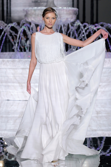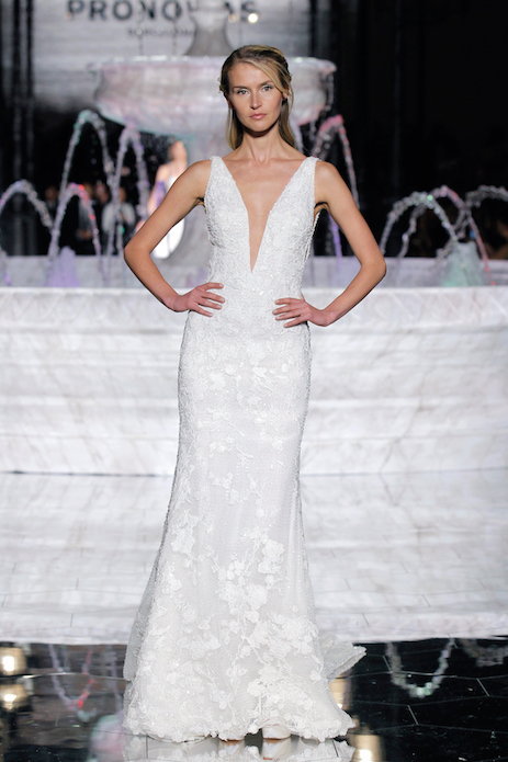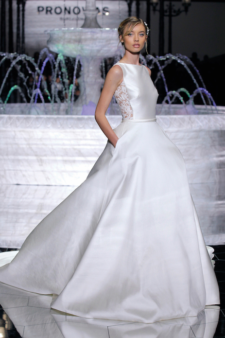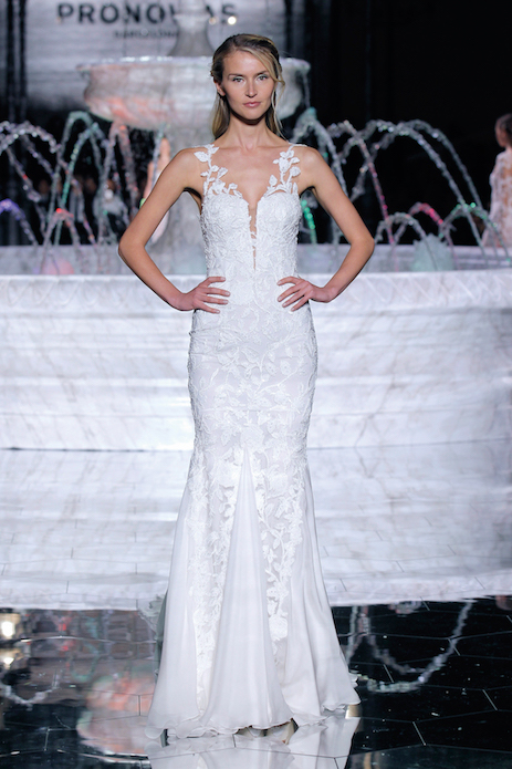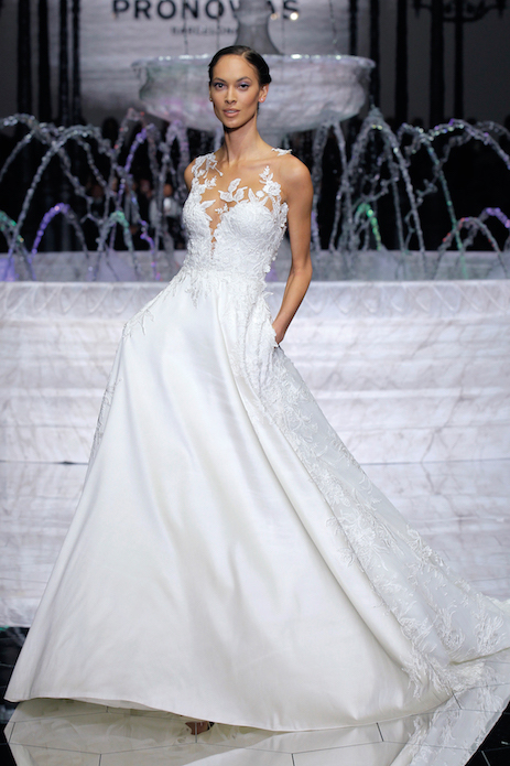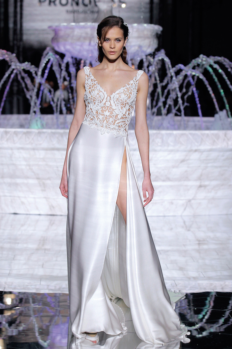 Innovative designs, offering many possibilities, fill the Atelier Pronovias 2018 Collection, from mermaid and flared designs to very full ball gowns. The dresses crafted in organza, crepe, soft satin and French lace, are finished with white gemstone embroideries that give the collection great sophistication and delicateness.